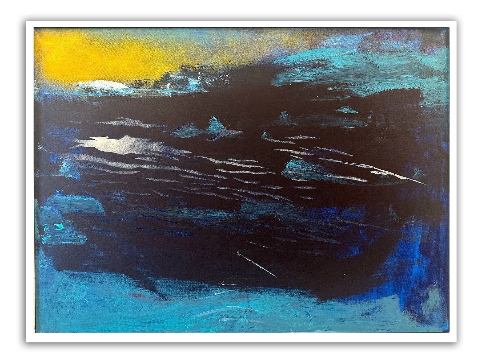 This captivating piece from the artist's latest Big Ocean series demonstrates a masterful command of mixed media, skillfully combining acrylic and spray paint on canvas to create a truly arresting seascape. The work presents a powerful and energetic interpretation of our magnificent ocean, where the artist's sophisticated use of varied blues creates remarkable depth and movement. The meticulously rendered wave details showcase both technical prowess and an intimate understanding of the sea's ever-changing character. This stunning composition would serve as a perfect focal point in any coastal environment, bringing the ocean's raw beauty and endless energy into the interior space with remarkable authenticity and artistic vision.